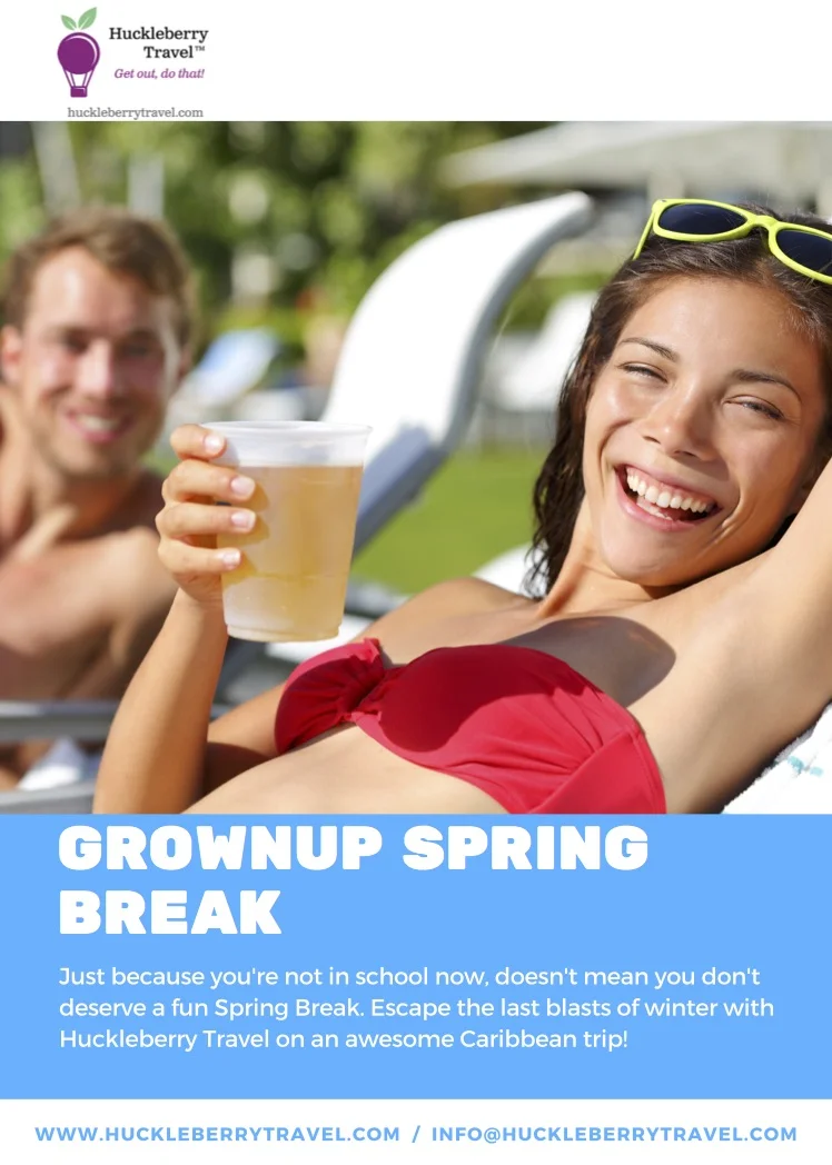 Fortunately, you thought ahead. You called Huckleberry Travel and booked their "Grownups Spring Break" cruise! Take a week off from "adulting" and let others do the work of your daily grind. On this six-night itinerary to Grand Cayman and Mexico, you can swim, spa, snorkel and explore, while someone else does the cooking for every single meal and makes your bed every single day.